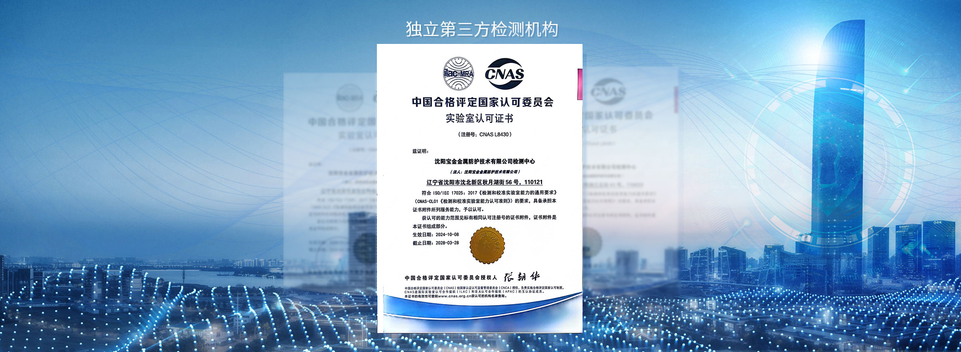 沈陽寶金金屬防護(hù)技術(shù)有限公司成立于2011年,于2019年獲批“國家中小企業(yè)公共服務(wù)示范平臺“,主要服務(wù)于金屬防銹防護(hù)領(lǐng)域。依托于專業(yè)技術(shù)服務(wù)團(tuán)隊,積累30余年防銹防護(hù)應(yīng)用技術(shù)數(shù)據(jù)庫和業(yè)內(nèi)尖端儀器設(shè)備,可為客戶提供防銹防護(hù)技術(shù)咨詢與培訓(xùn)、方案設(shè)計、可行性論證、建立標(biāo)準(zhǔn)、檢驗檢測、委托管理等服務(wù)。